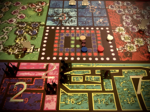 Das Spielfeld (90cmX90cm) kannst Du auf eine Plane drucken lassen und auslegen