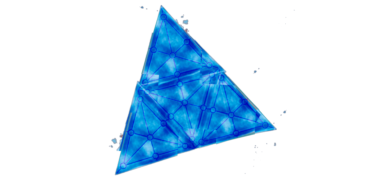consists of four triangles each with seven points which are connected by lines (three corner points, three median points and one middle point). The game figures stand on the points.The four triangles are arranged as a big triangle. The corner points and the median points of the inner triangle form together with the neighbouring points of the other triangles merged points. A game figure stands here on theese merged points. (You can combine this version with "complex version" or "original version" as well!)