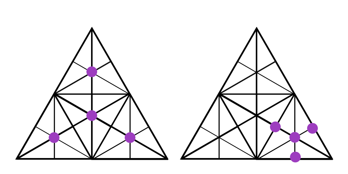 2) first owns the middlepoint and the three median points of any single triangle OR