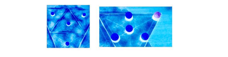 The Tripple (3 game stones + 1 color marker) can move from a point to the next point or from the middle point of a triangle to the middle point of another triangle or from a middle point of a triangle to the three corners of the big triangle.